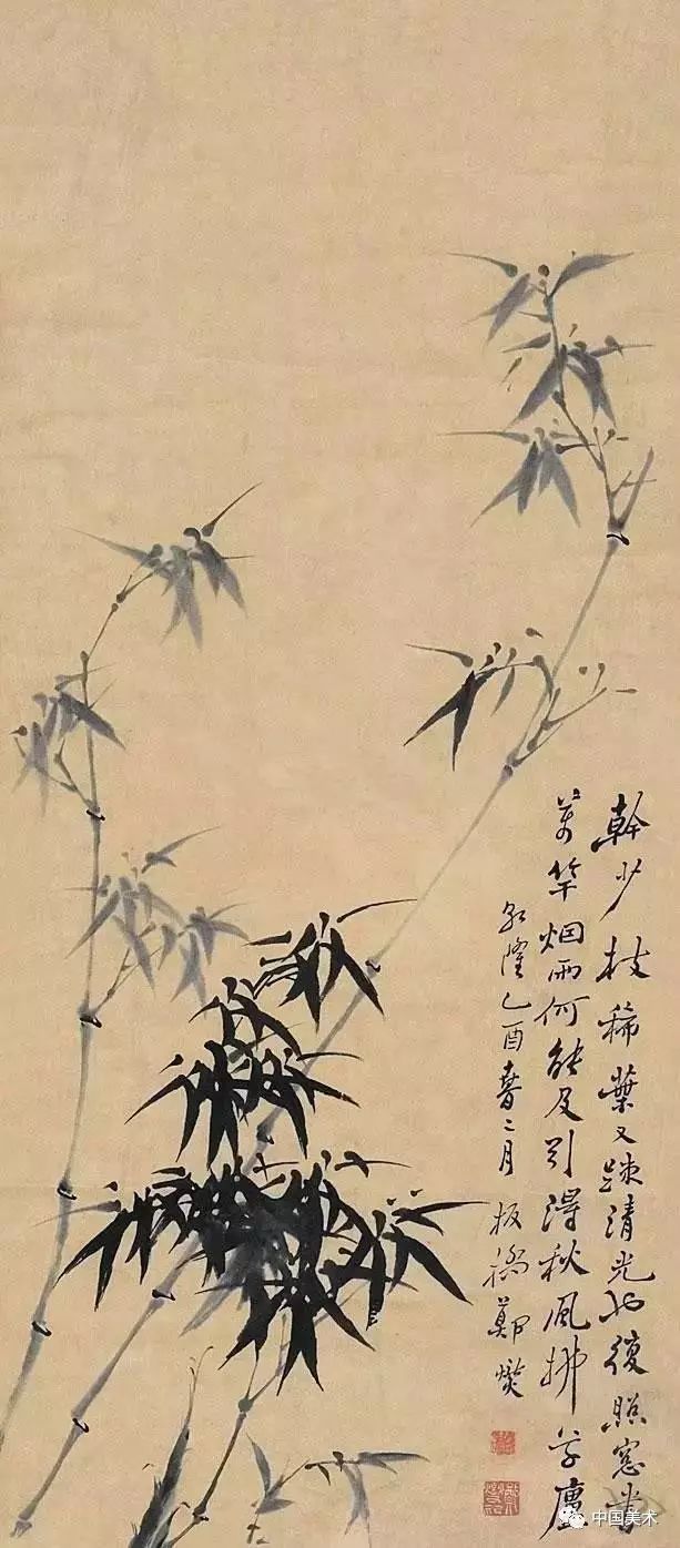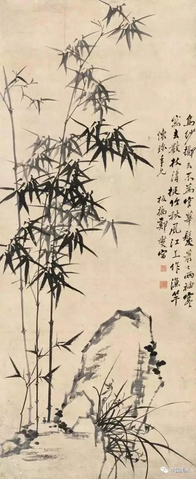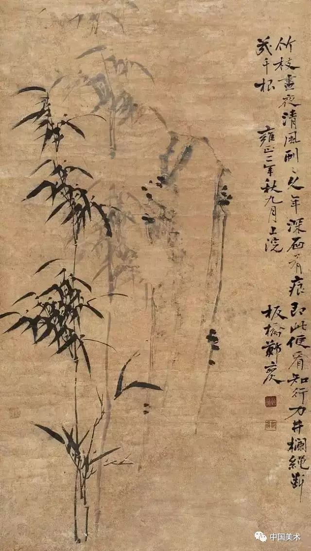 鄭板橋晚年時畫的《竹石圖》,全幅畫雖不著色,卻使人感到翠色欲流。他自己為這幅畫題詩:“四十年來畫竹枝,日間揮筆夜間思。冗繁削盡留清瘦,畫到生時是熟時”。他畫了40年竹子,終于悟出繪畫須去掉繁雜提煉精髓的道理。 喜竹愛竹物我合一 鄭板橋的竹風韻超然,首先得之于喜竹愛竹。鄭板橋曾說:“凡吾畫竹,無所師承,多得于紙窗、粉壁、日光、月影中耳。”他的繪畫創作規律:眼中之竹——胸中之竹——手中之竹,即看竹、思竹至畫竹。他的繪畫創作規律:眼中之竹——胸中之竹——手中之竹,即看竹、思竹至畫竹。