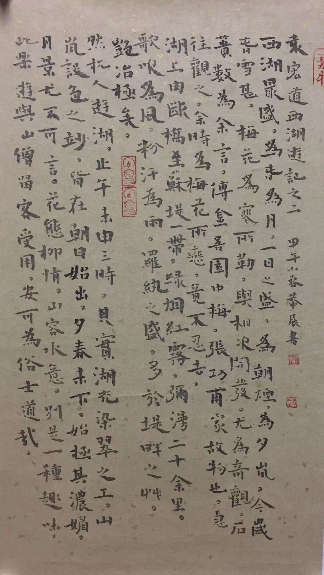 楷書小中堂《袁宏道西湖游記》