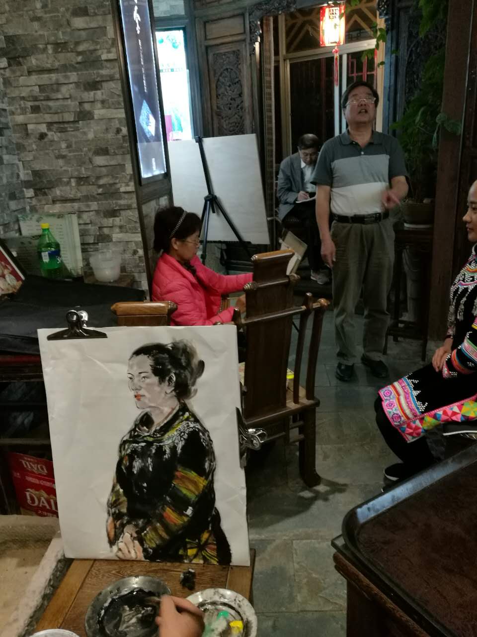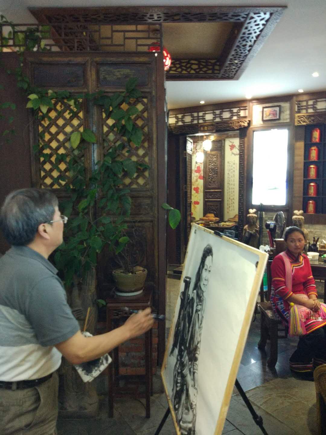瀾滄拉祜族自治縣,云南省的第二大縣,普洱茶的故鄉,這里居住人口將近50萬,少數民族有40萬,以拉祜族為主,這里也是我愛人的故鄉,這里的山水自然風光很美,我希望各地的畫家們來瀾滄采風,瀾滄作為這次采風的一個臨時大本營,從23號進入瀾滄的糯扎渡大歇場山寨,24號到孟連縣采風,晚上回到瀾滄的民族晚宴,驛風茶莊的人物寫生和創作活動,25號星期天趕集,景邁山下的午餐,這些都是我小舅子以及他的朋友們安排的,我小舅子李熠,是瀾滄文化局負責體育這一塊的領導,長期以來一直瀾滄體校的校長,他的人脈非常廣,他熱情好客,性格奔放,能歌善舞,是拉祜族的漢子。
