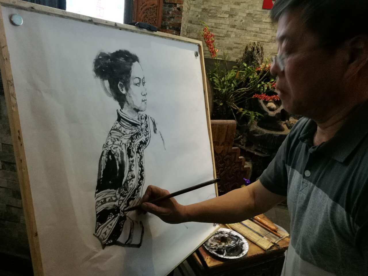▲史新民老師在創作作品