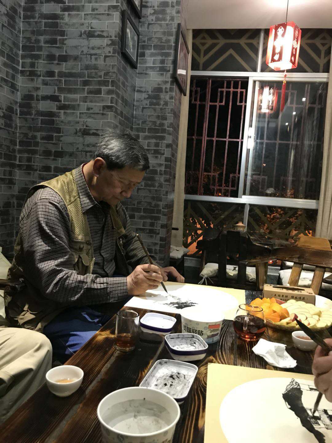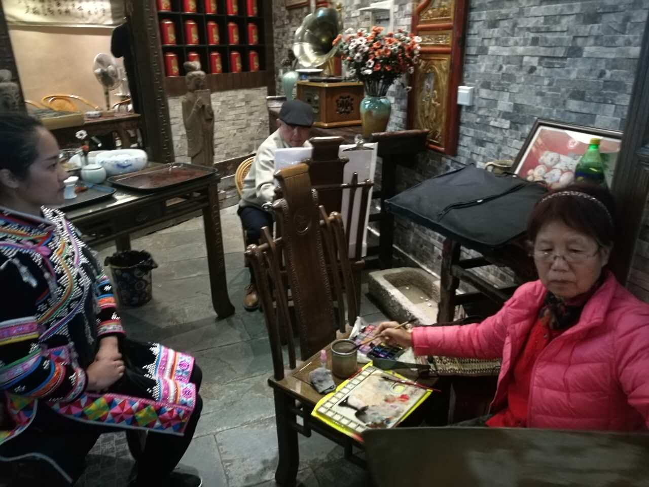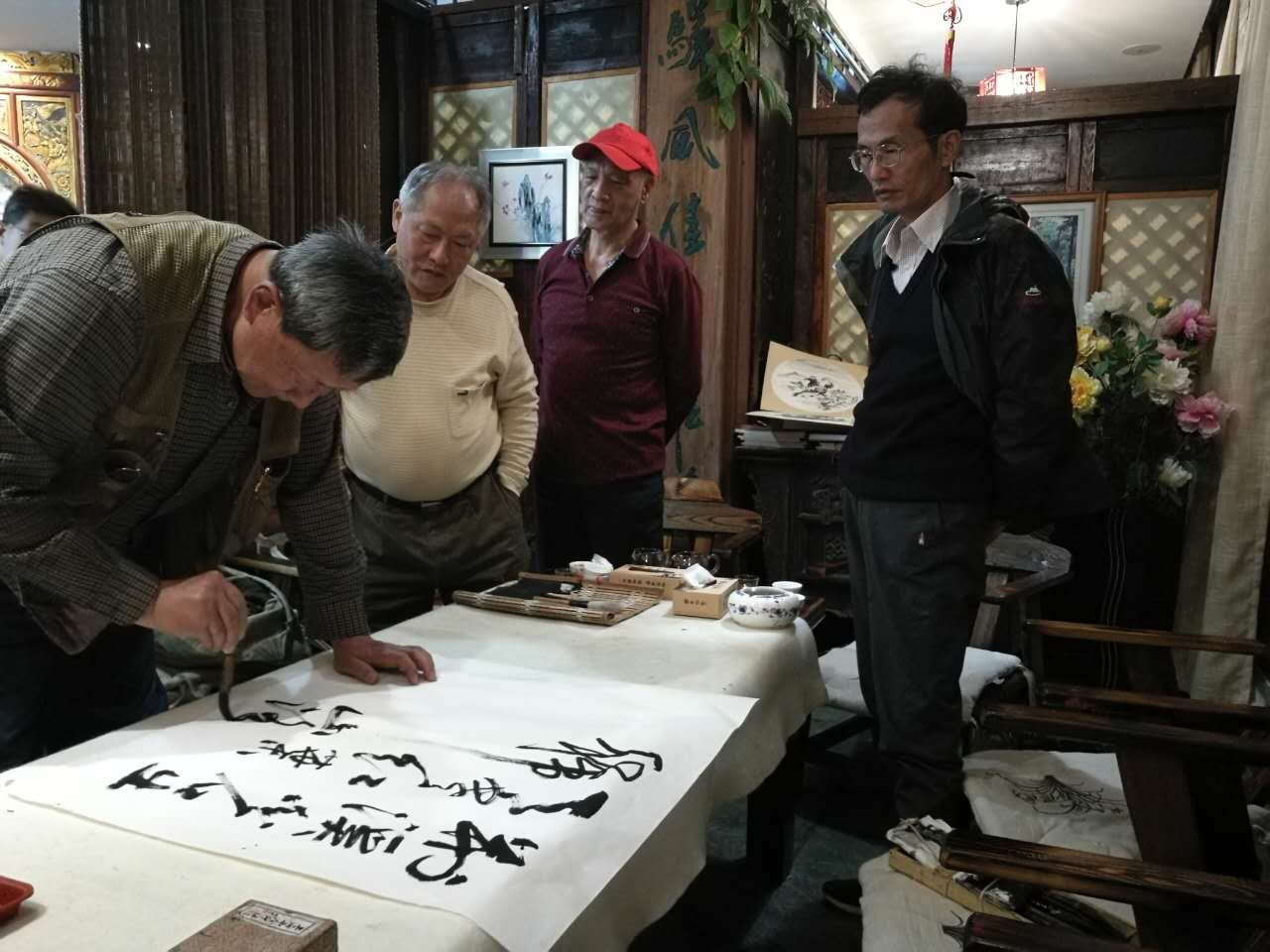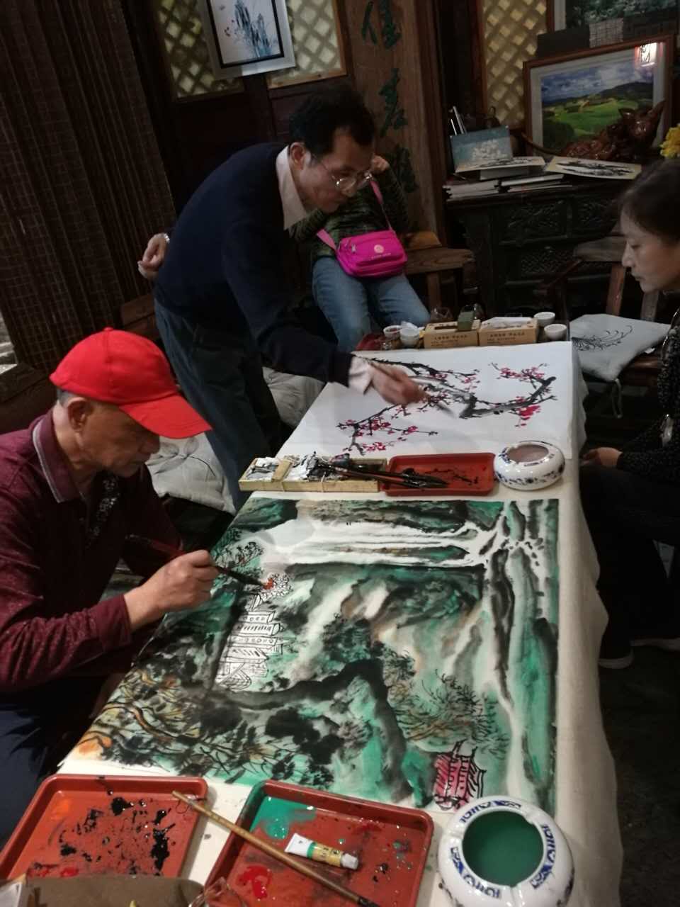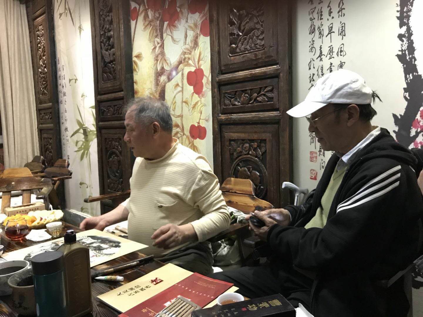 ▲在茶莊曹舒天老師和孫忠民老師創作作品