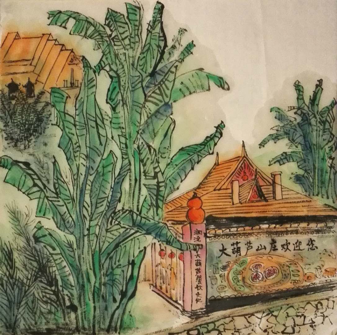 24號,一早去孟連縣的阿卡寨寫生,下午我們早早地離開了,我們的車很快很快回到了瀾滄,我小舅子也來電話,讓我們大家去吃晚飯,已經在瀾滄水庫的大葫蘆山莊等我們了。