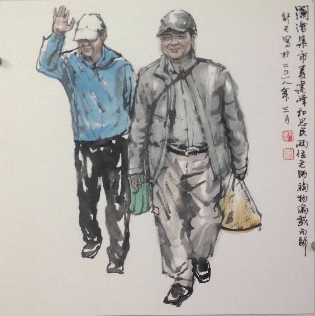 ▲夏建峰和孫忠明趕集回來(曹舒天作品)