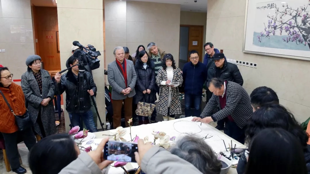 下午,楊正新于上海市文聯示范玉蘭花的創作過程,分步展示、解讀,為觀眾講解更為細致的創作思路。