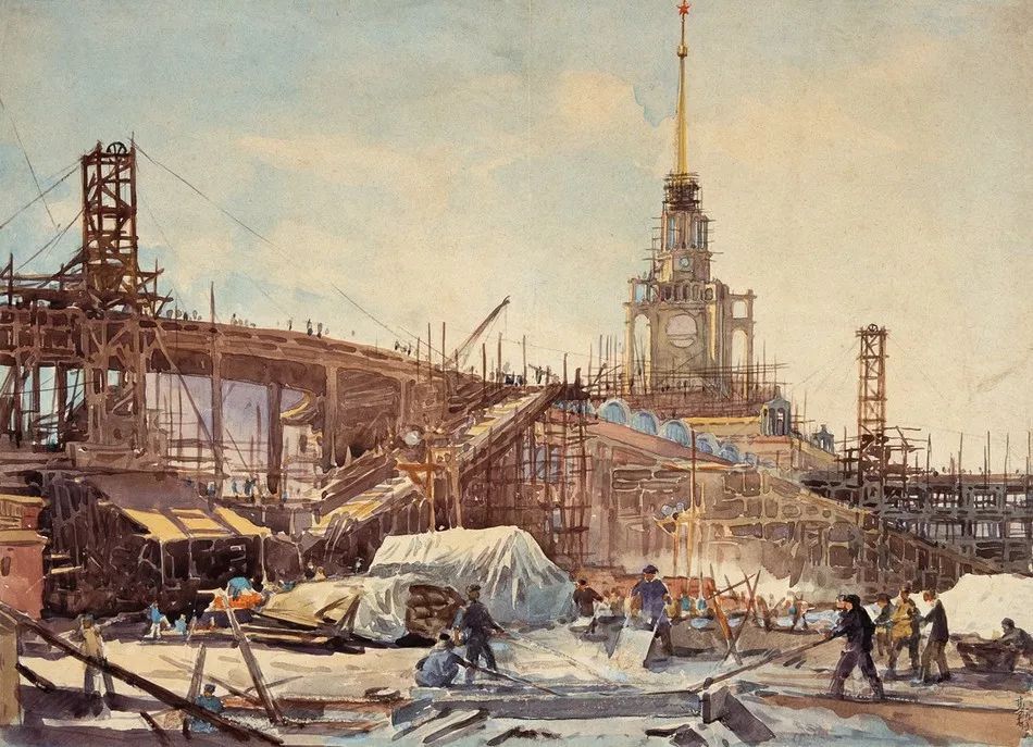 建設(shè)中的北京展覽館 31.3 X 42.9cm 紙本設(shè)色