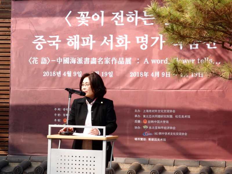 花語-展,中國駐韓國大使館公使金燕光先生致辭。