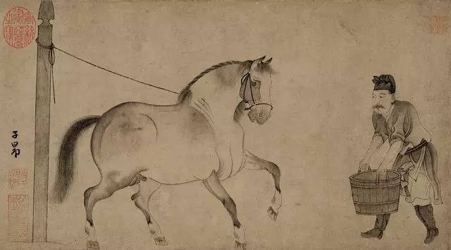 他所畫鞍馬,如《人騎圖》。《人馬圖》、《秋郊飲馬圖》,用筆簡括,色彩單純淡雅,風格上力追唐人風韻。《秀石疏林圖卷》用飛白法畫石的紋理結構,以篆法畫樹干,形神俱足,筆精墨妙,是他自己“書畫用筆同法”主張的具體體現。趙孟頫還畫了不少工致的佛像、經史故事等作品,其中有白描人物畫卷傳世。