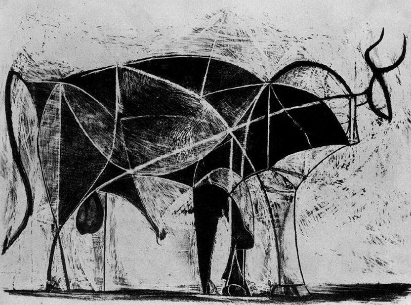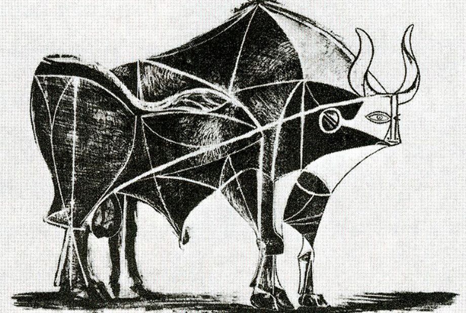 從畢加索中后期畫的一系列關(guān)于牛的速寫,可以看出一些,一頭寫實(shí)的牛,是如何進(jìn)化成立體派的牛,非常值得一看。
