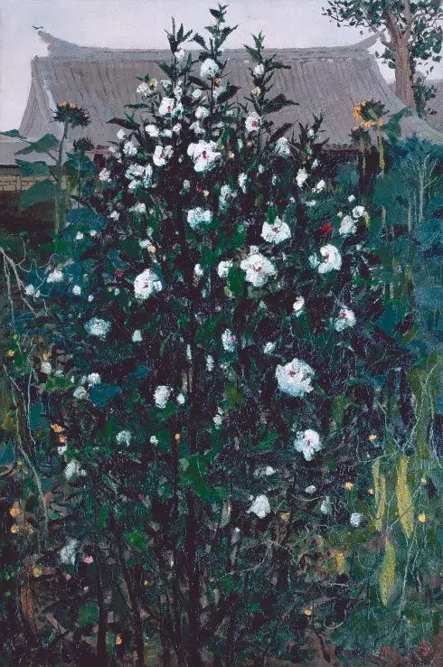 木槿花 布面油畫 吳冠
