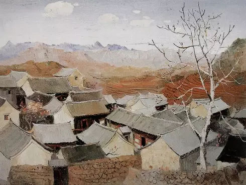 吳冠中-京郊山村-46×61-布面油彩-1962