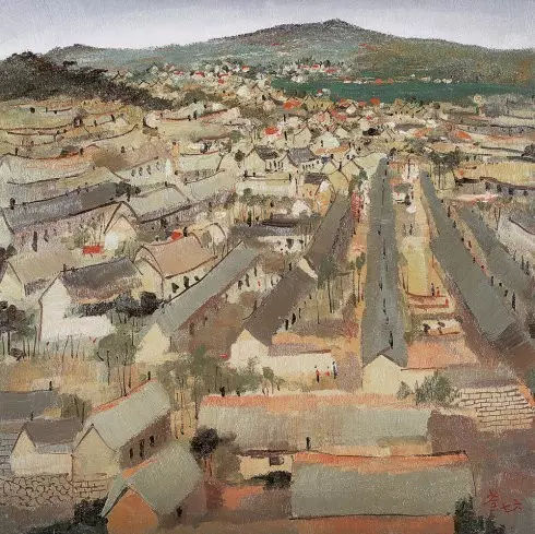 吳冠中-龍須島新村-46×46-布面油彩-1976