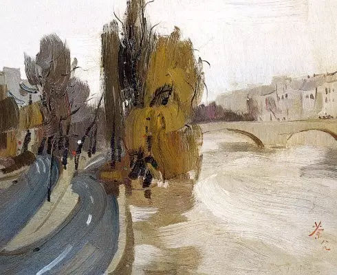 吳冠中-塞納河畔-37.5×45-布面油彩-1989