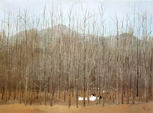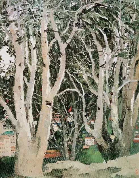 吳冠中-白皮松-34×26-布面油彩-1972
