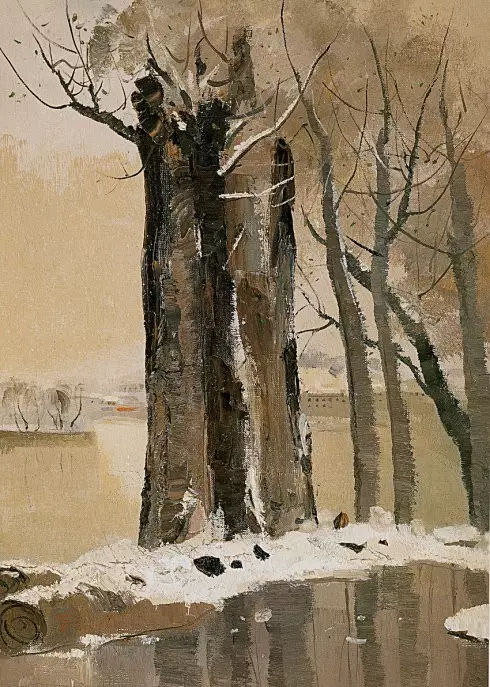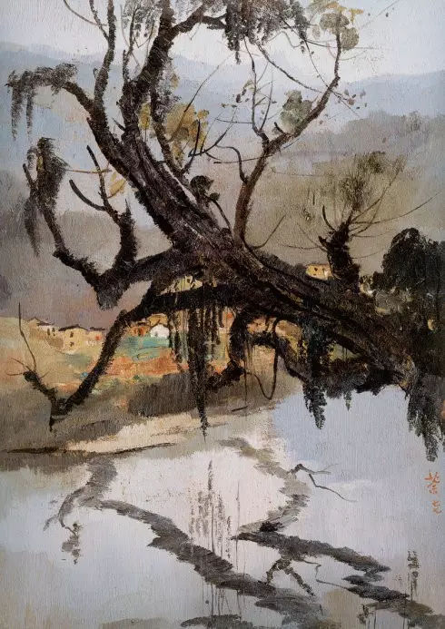 吳冠中-河邊老樹-61×46-布面油彩-1977
