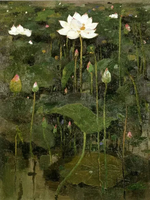 吳冠中 荷花-120×90-布面油畫-1974