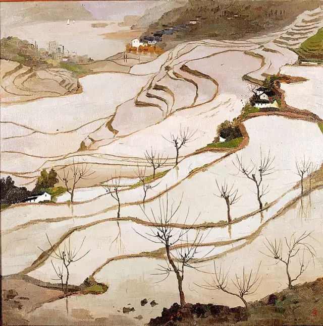 吳冠中-山間春色-62×46-布面油彩-1974