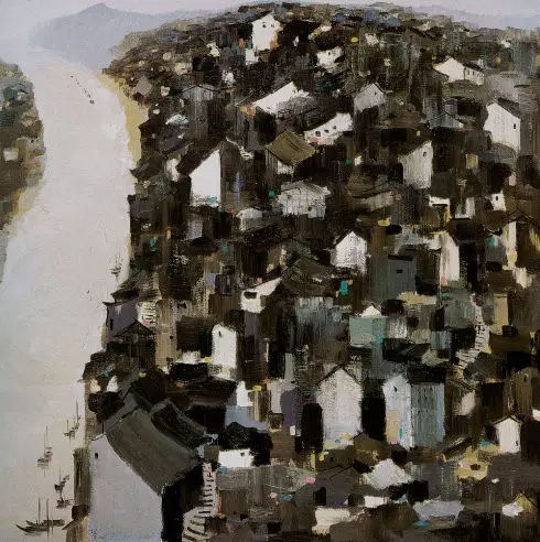 吳冠中-長江山城-148×148-布面油彩-2003