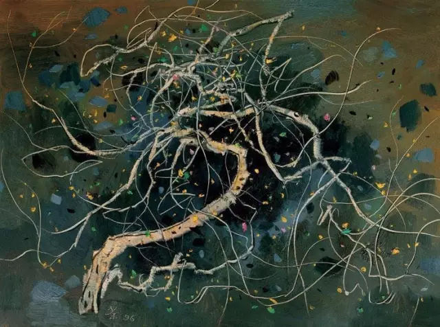點線迎春 油畫 73 ×54cm 1996 吳冠中