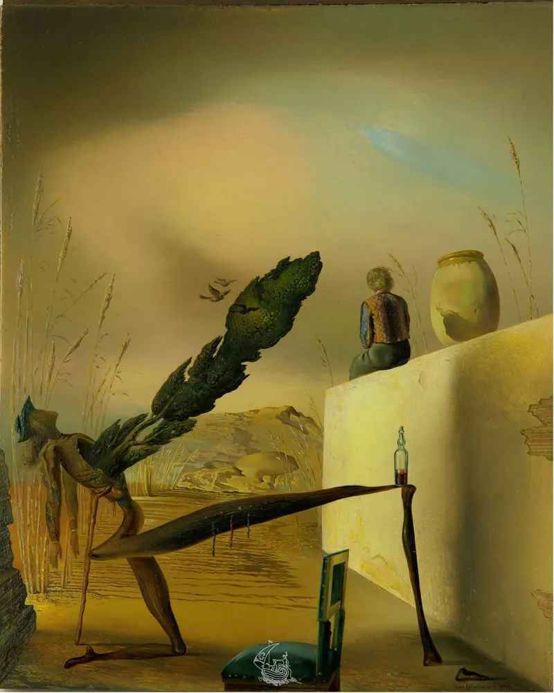 這幅早期作品中咧嘴笑的年輕人,真的有可能是我們完美無缺的藝術家本人嗎?盒中的玩偶出現這一次之后,就被合上,而且永遠結結實實地關起來了嗎?如果真是這樣,倒是可以解釋描繪名聲的畫家強迫癥式的性格,他幾乎是蜷在畫架上,像個大蟑螂。薩爾瓦多·達利對此特別激動,他多次把維米爾放在自己的弗洛伊德式混合作品中,次數幾乎趕得上他模仿米勒的《晚鐘》的數量。