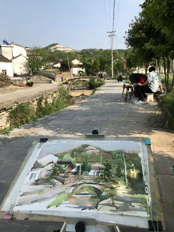 上海市美術(shù)家協(xié)會(huì)創(chuàng)作沙龍21位畫家于4月26日一30日赴安徽宣城水東鎮(zhèn),先后在水東古鎮(zhèn)的老街、老宅、清代十八踏、天主堂,上何村的石林,龍泉洞景區(qū),鴉山古道,千年銀杏長廊,小胡村宗村等古村,用國畫、油畫、水彩畫和速寫等藝術(shù)形式采風(fēng)寫生,大家積極投入,短短五天結(jié)累了百余幅寫生作品,寫生期間還組織了一次觀摩交流,應(yīng)當(dāng)?shù)劓?zhèn)政府及文化旅游部門邀請,沙龍從每位畫家寫生作品中挑選一幅作品作為鎮(zhèn)陳列館展品陳列展出。本次活動(dòng)由上海美協(xié)創(chuàng)作沙龍和宣城振宣文化發(fā)展有限公司共同舉辦。是自去年上海市美術(shù)家協(xié)會(huì)和宣城市宣州區(qū)政府簽定《上海美術(shù)家協(xié)會(huì)水東創(chuàng)作寫生基地合作協(xié)議》后又一次寫生活動(dòng)。上海美協(xié)副主席、秘書長陳琪、水東鎮(zhèn)黨政主要領(lǐng)導(dǎo)對這次活動(dòng)作了精心安排和指導(dǎo)。