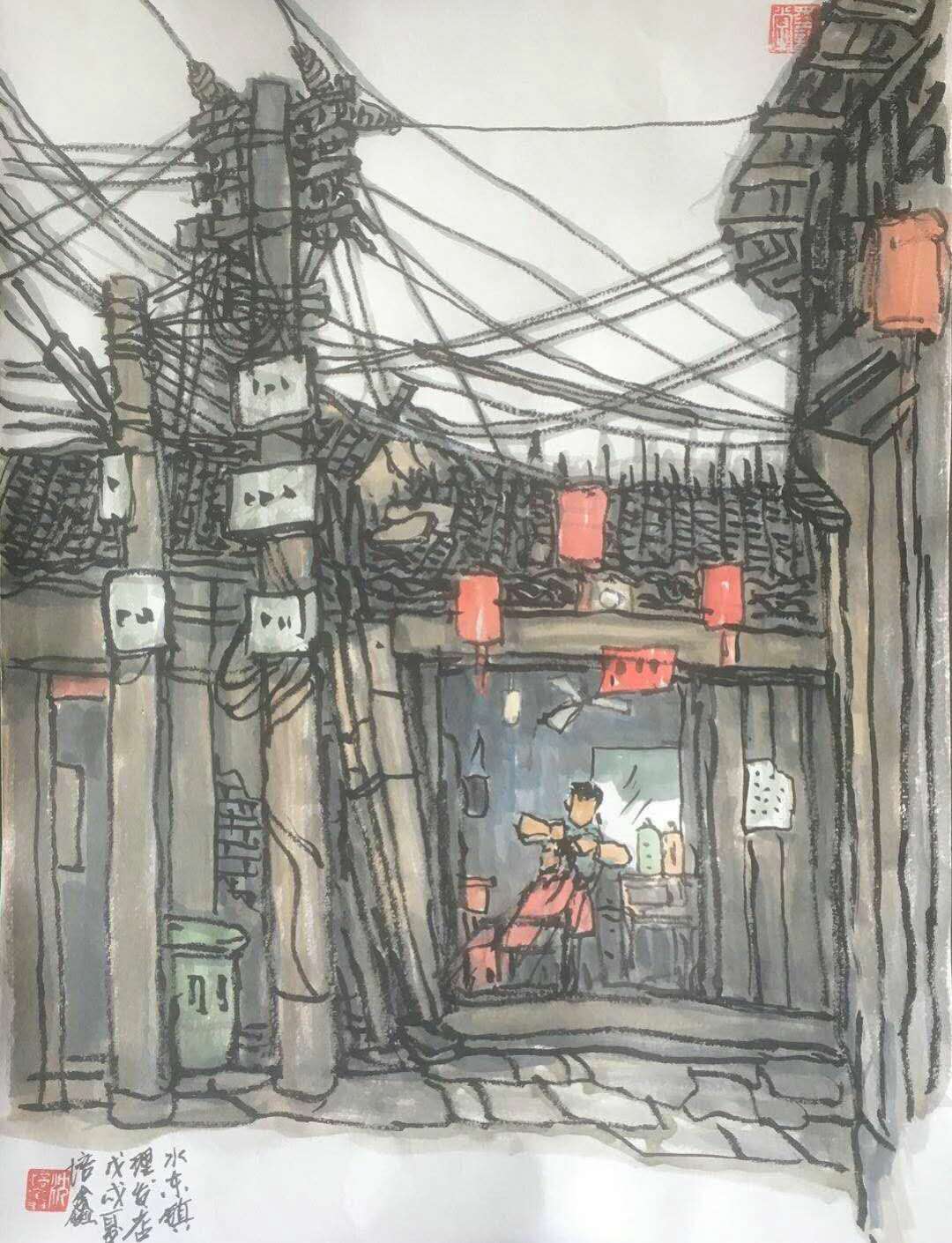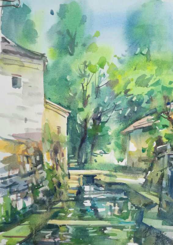 作者:姚振彪 作品:宣城水東鎮(zhèn)上何石林寫生 國畫