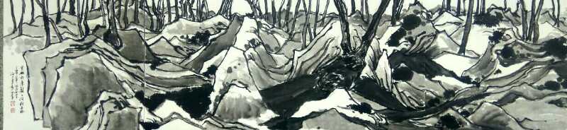 作者:夏建峰 作品:水東上何村的石林 中國畫 尺寸(200×50cm)