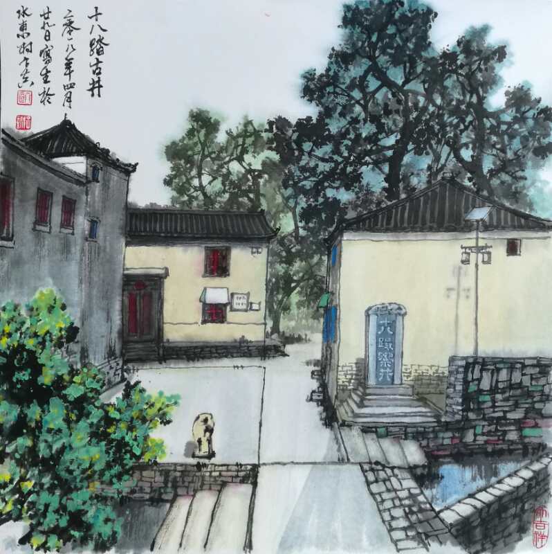 作者:卞真 作品:十八踏古井 中國畫 尺寸(50×50cm)