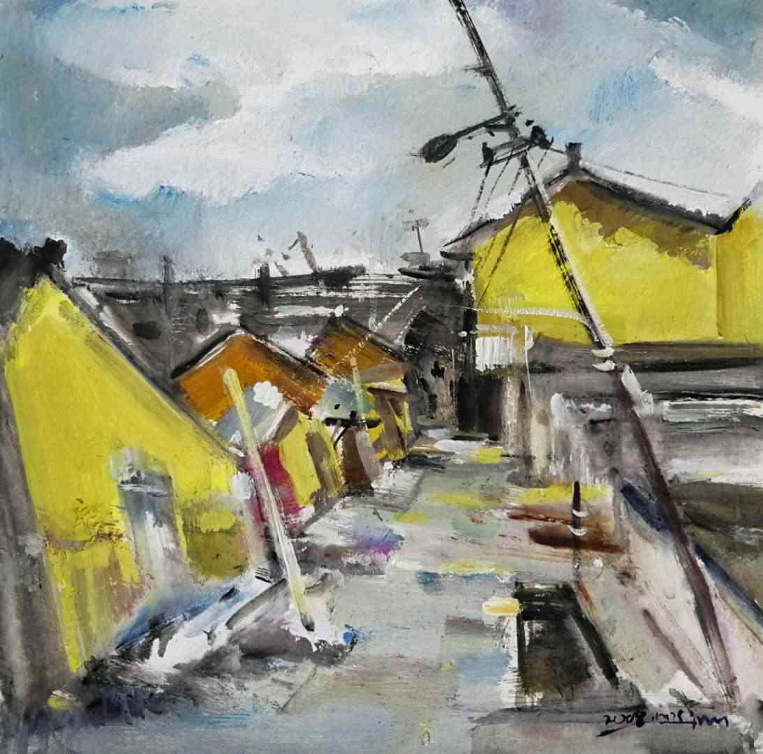 作者:殷實(shí) 作品:水東古鎮(zhèn) 紙本水彩 尺寸(45×45cm)