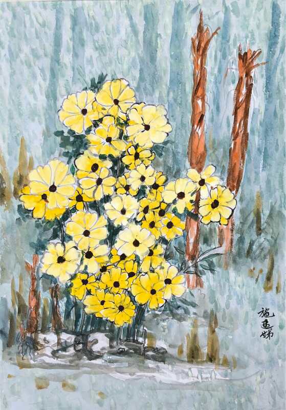 作者:盧英鑒 作品:春歸 中國畫 尺寸(50×50cm)