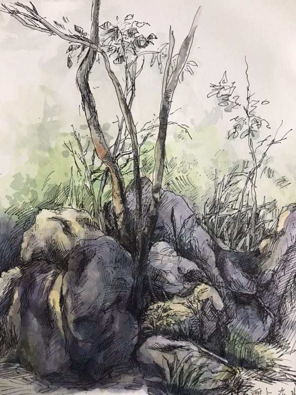 作者:嚴(yán)榮鎮(zhèn) 作品:水東古鎮(zhèn)石林寫生