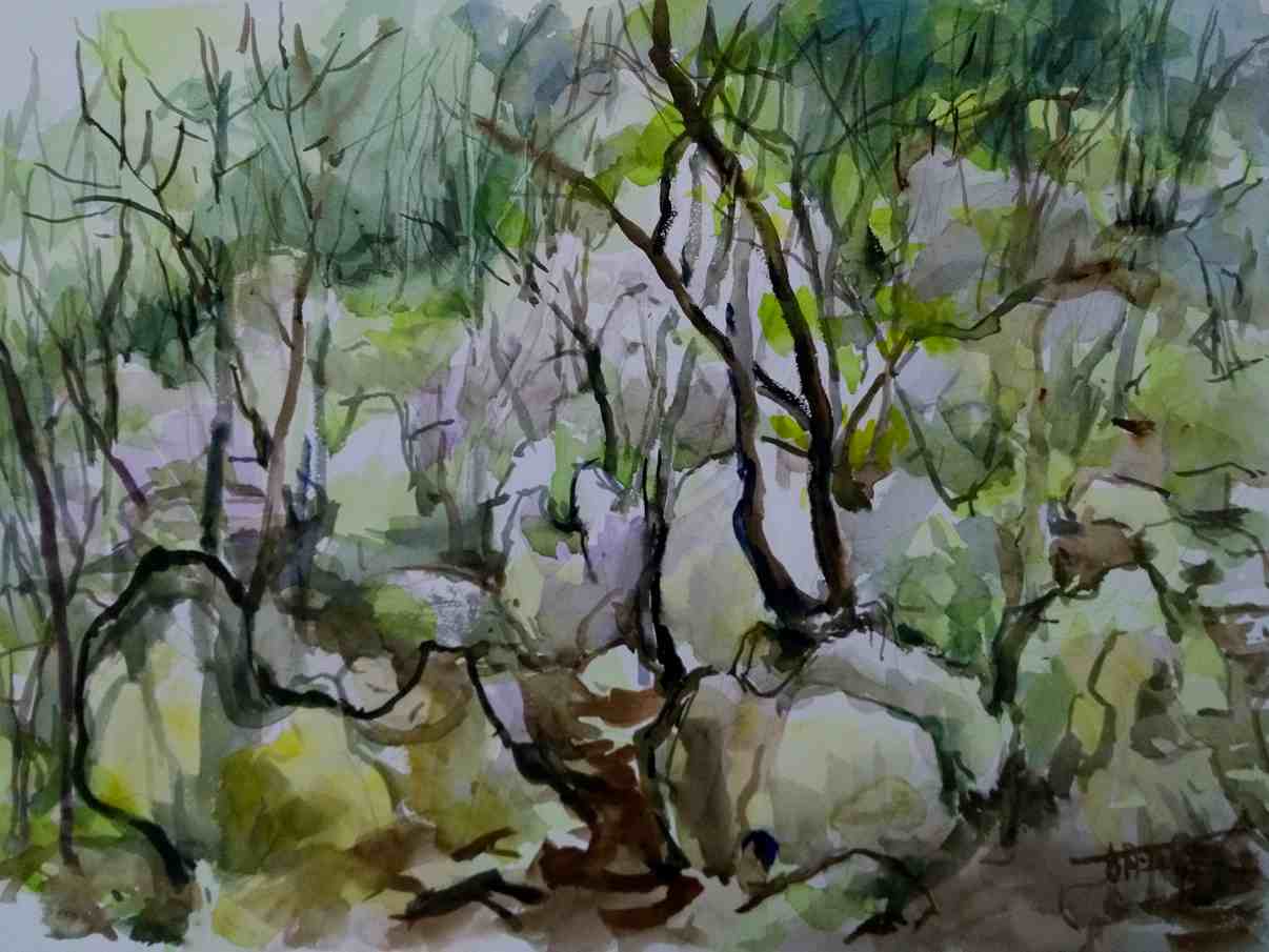 作者:洪建康 作品:水東石林寫生 尺寸(70×55cm)