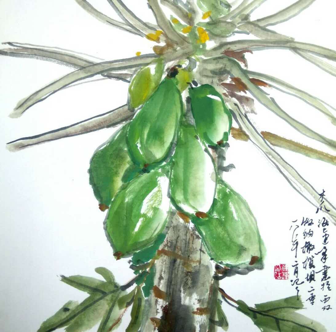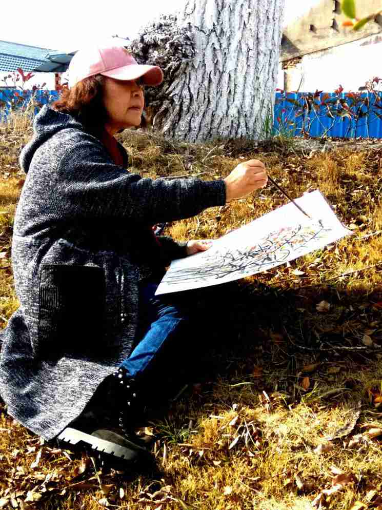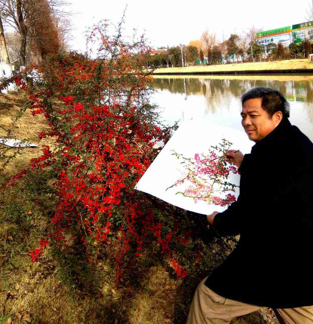 陽歷新年,2018年元月1日,夏建峰夫婦倆應邀到崇明島參加婚禮。夏老師與夫人自駕到了崇明島,看到路邊美麗的紅果,就忍不住想用畫筆記錄下這美麗時刻,夏老師夫人也是一位畫家,兩位老師有相同的興趣愛好真是羨煞旁人呀。