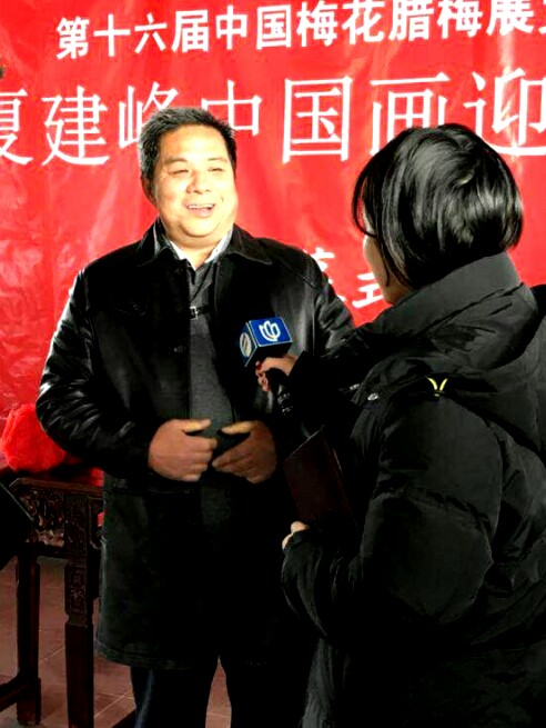 元月10日“2018夏建峰中國畫作品迎春展”,在上海海灣國家森林公園唐梅廳舉行,夏老師接受電視臺采訪。