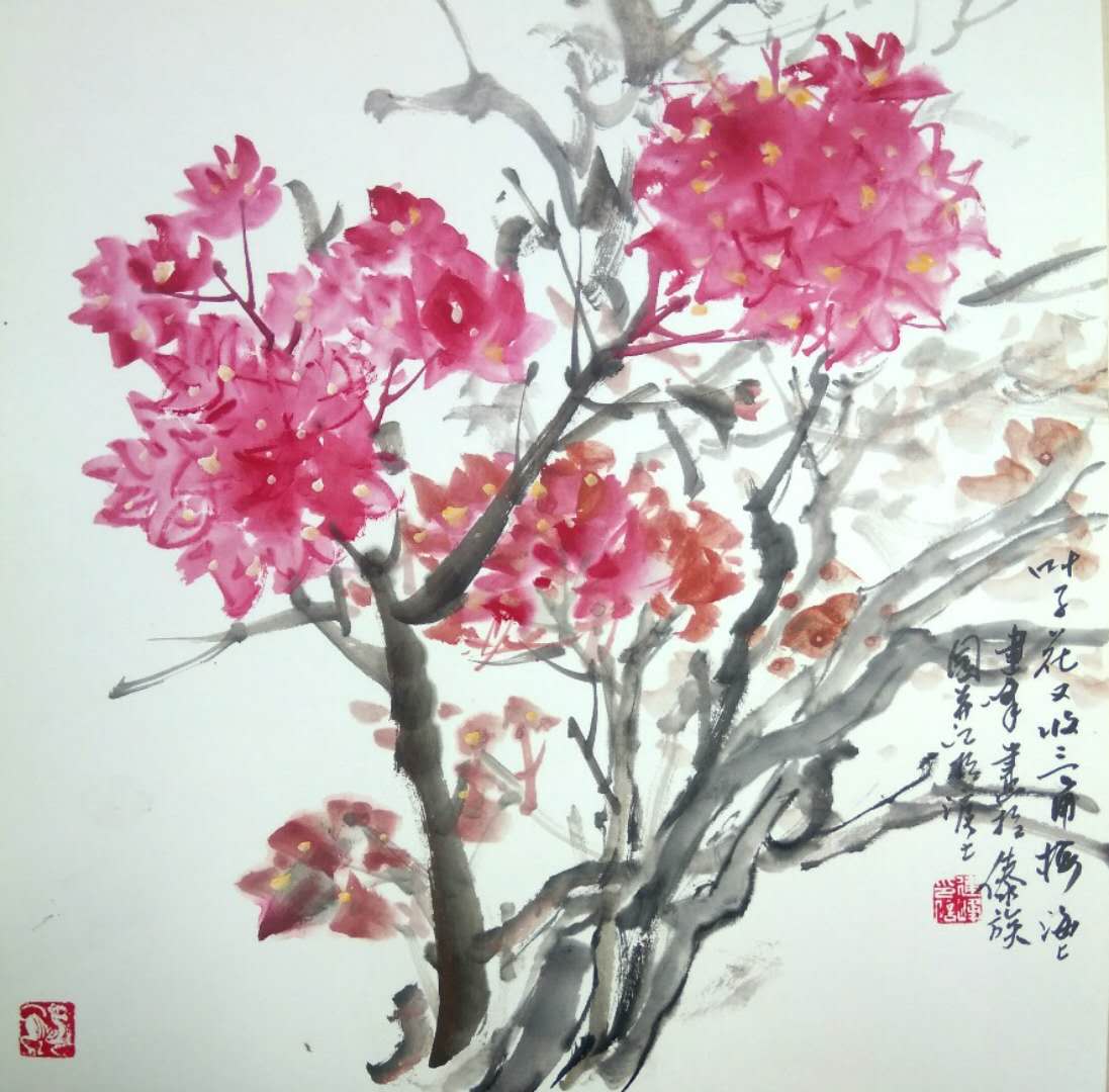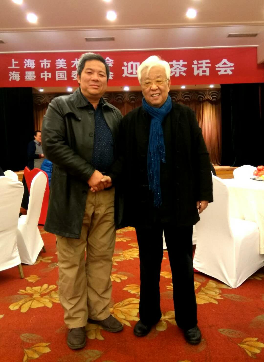 元月27日夏老師應邀參加上海美協(xié)海墨畫會在延安飯店舉行的迎春茶話會,并和上海著名花鳥畫家陳世中先生合影(大學時期的老師)。