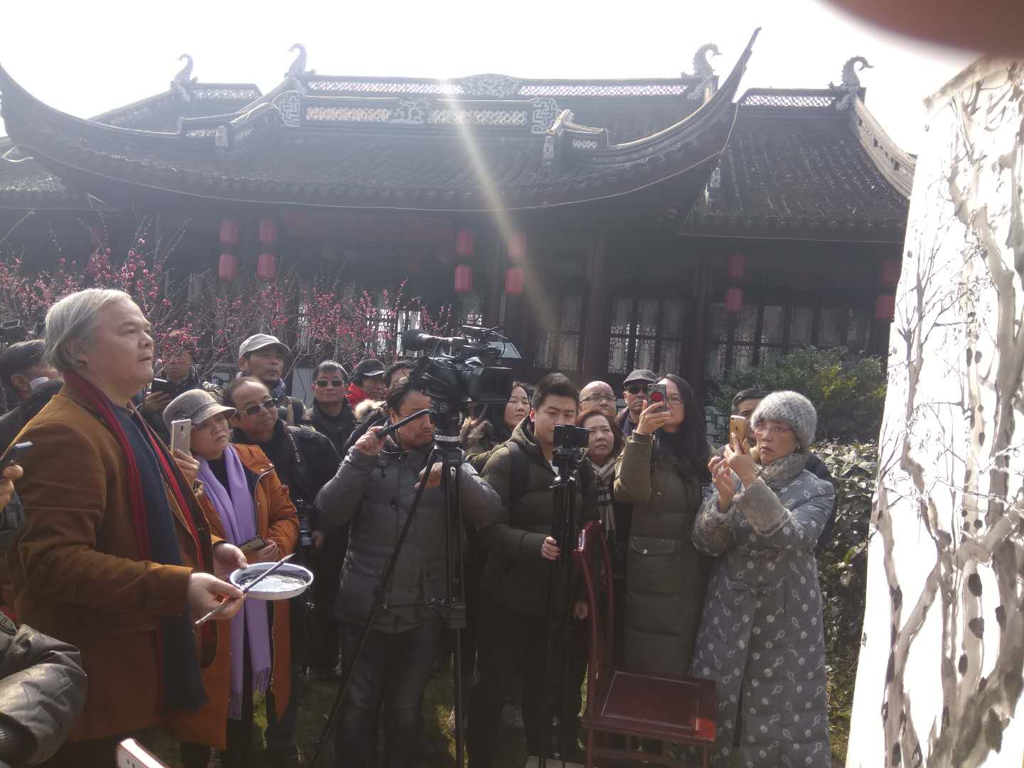 2月8日身為上海美術家協(xié)會花鳥畫沙龍召集人夏建峰,受上海市美術家協(xié)會委托并協(xié)助美協(xié),由上海市文聯(lián)和上海美術家協(xié)會主辦的上海海灣國家森林公園協(xié)辦的“一花一世界”陳琪先生梅花名家寫生示范活動,在唐梅廳舉辦活動,參加活動的畫家有一百多人,上海電視臺作了報道(合影右一上海市美術家協(xié)會副主席兼秘書長陳琪,左一夏建峰老師)。