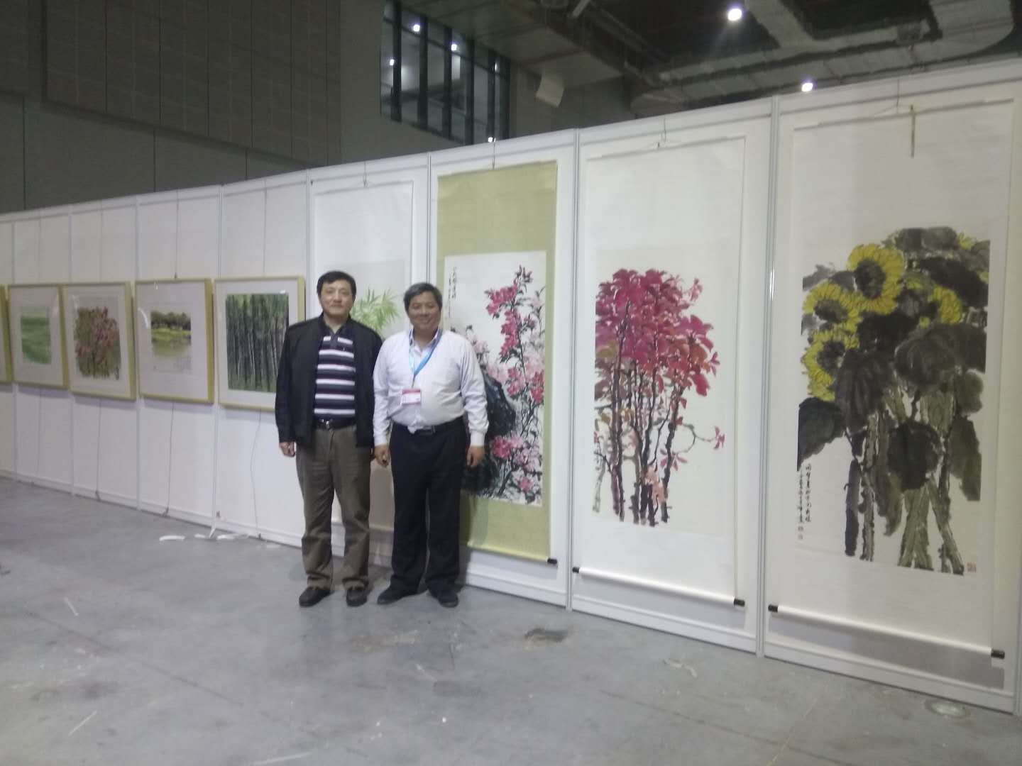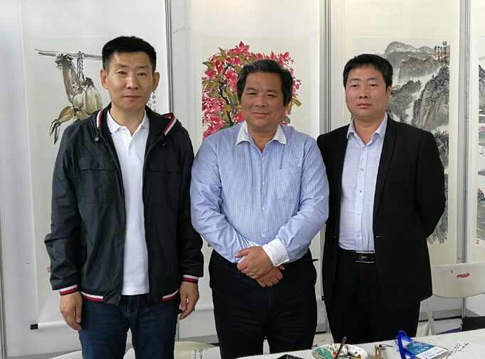 3月29日夏老師應上海華凝傳媒郁總的邀請,“夏建峰中國畫作品展”在上海國際會展中心舉行,畫家朋友前來捧場。
