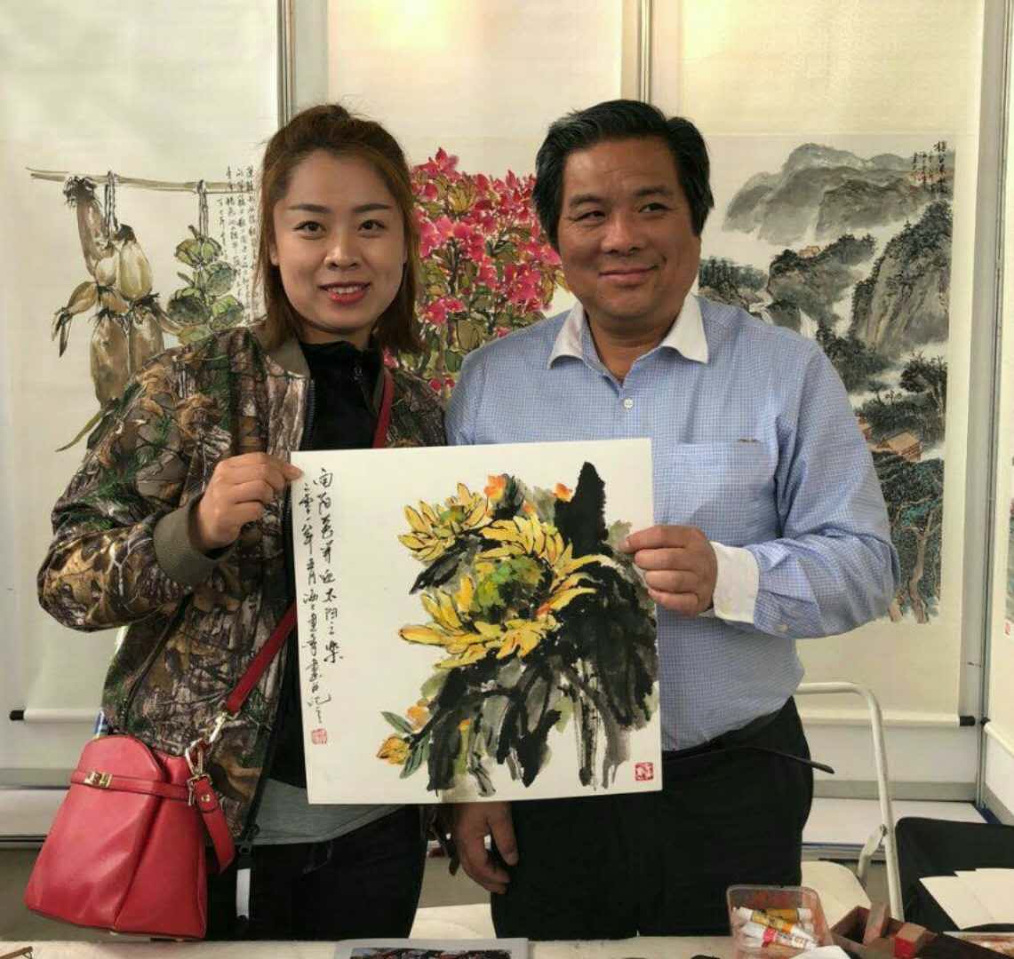 元月25日,夏建峰老師的作品“向日葵”參加海墨畫會在上海鮮花港的展覽,夏建峰老師和應鶴光會長在應會長的作品前合影。
