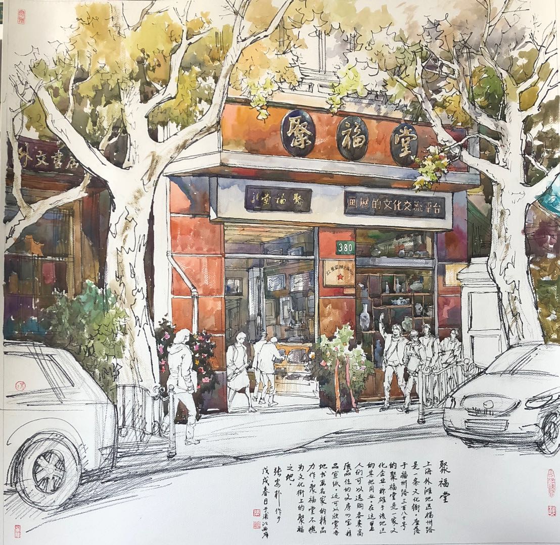 上海美術家協(xié)會副主席張安撲先生,創(chuàng)作寫生的“聚福堂”作品