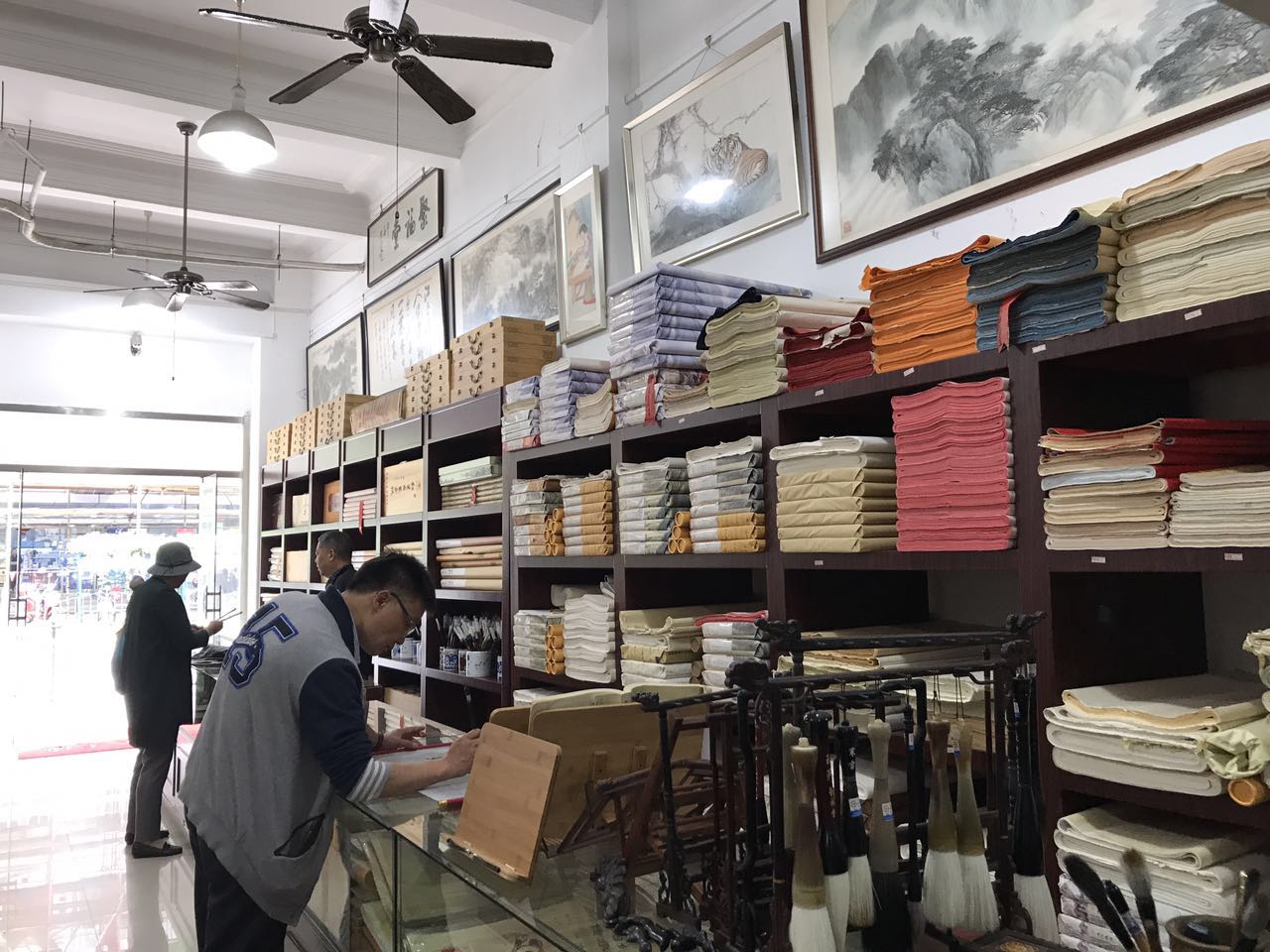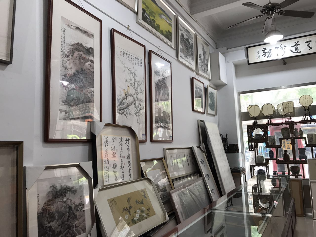肖老板的“聚福堂”是一家以書畫、文房四寶為主的店,是文人雅客的聚集地,地點選在了上海文化一條街福州路上,臨近上海文化商廈。我?guī)啄昵伴e逛的時候來到過這家店,進去第一眼給我的感覺就是他的店很大,而且墻上掛滿了上海最活躍的名家書畫作品,當時我覺得這個店不一樣。
