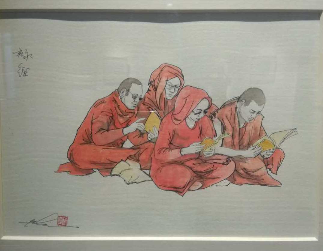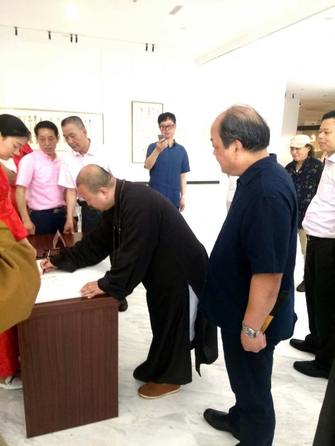 上午九點半剛剛過,覺醒大和尚等嘉賓的面包車來到展覽館大門,樂震文院長等在門口迎接。