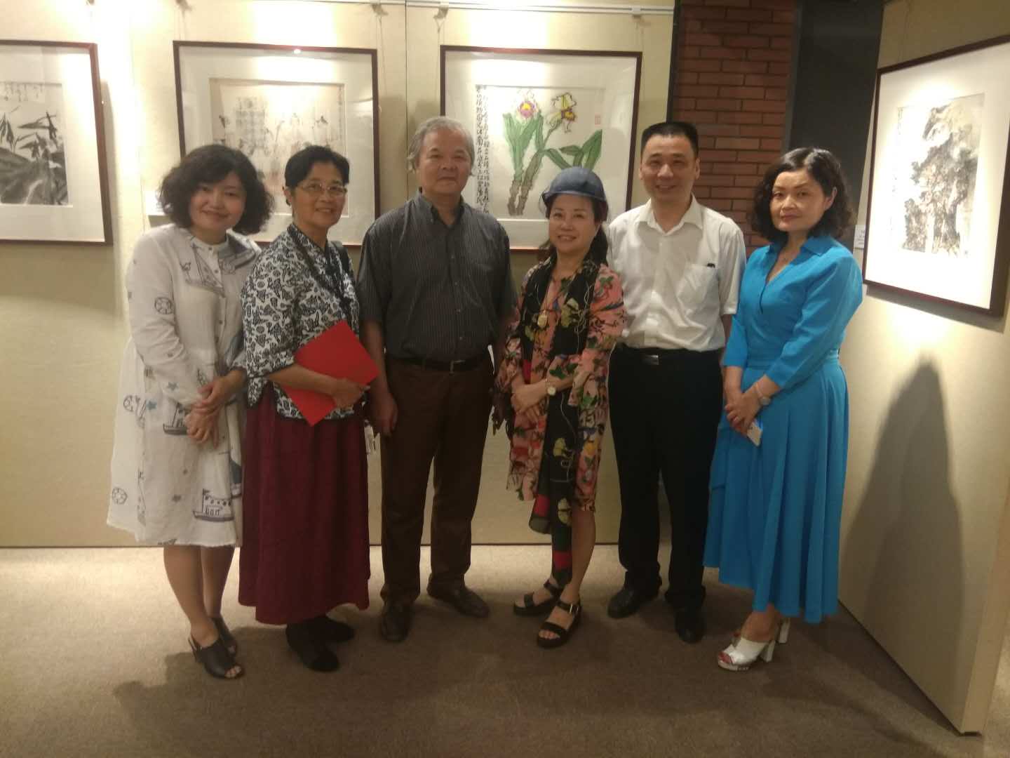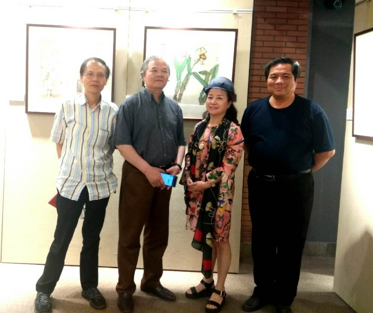 中央電視臺(tái)書畫頻道的記者格格,還有寶山美術(shù)家協(xié)會(huì)副主席李新衛(wèi)先生和陳琪先生夫婦合影