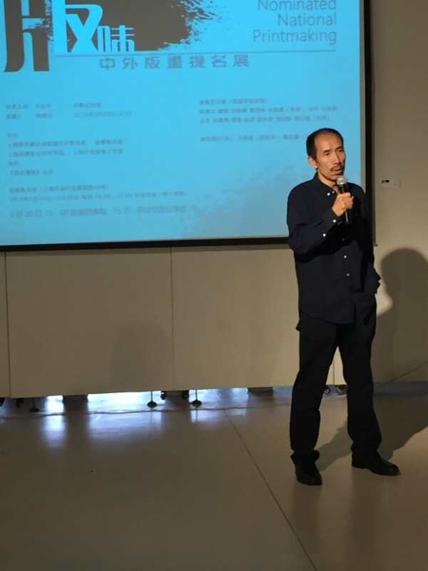 上海是現代版畫藝術在中國的發源地,其藝術生態一直備受國內外的關注。本次提名展傾向于“版味”這個提法,體現了與當下經典與傳統的版畫面貌區別開來的自覺性。這次展出的作品有在篇幅上與常規有所突破的作品;拓展版畫作品的延展性作品;在時間、空間的范圍內做嘗試的版畫作品;觀念上的有探索的作品等,同時還有幾位國外的藝術家的作品,橫向體會世界各國版畫家同樣探索在路上的態度。最后,到場嘉賓和參展藝術家上臺合影留念,并由張學龍校長宣布本次展覽正式開幕。