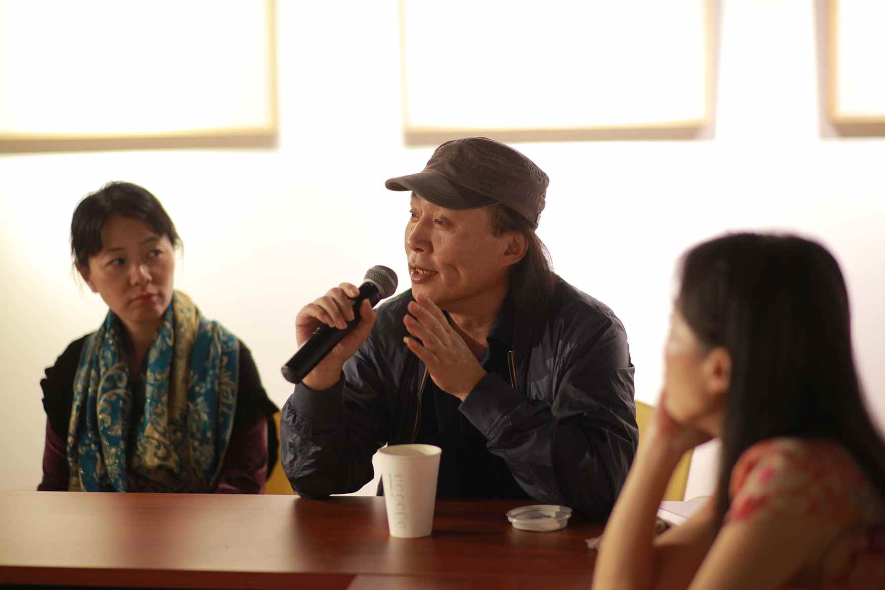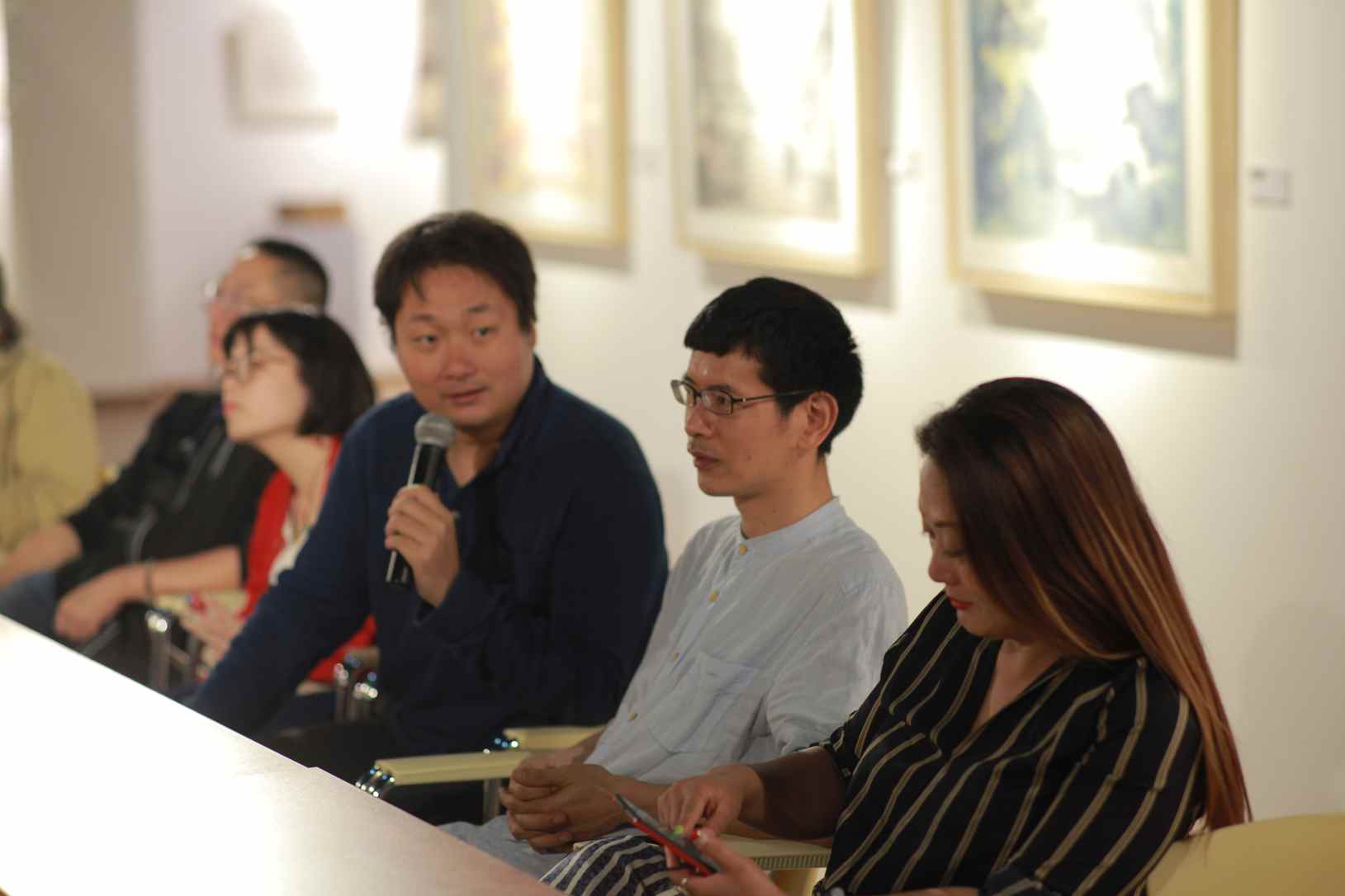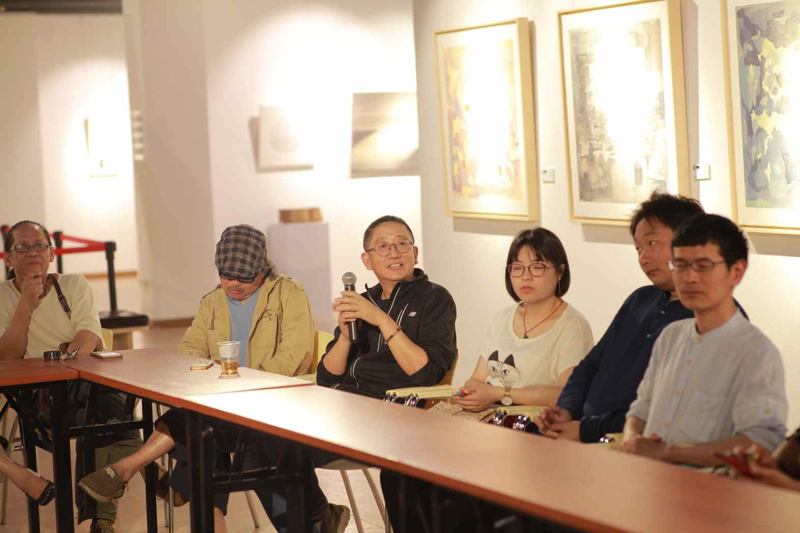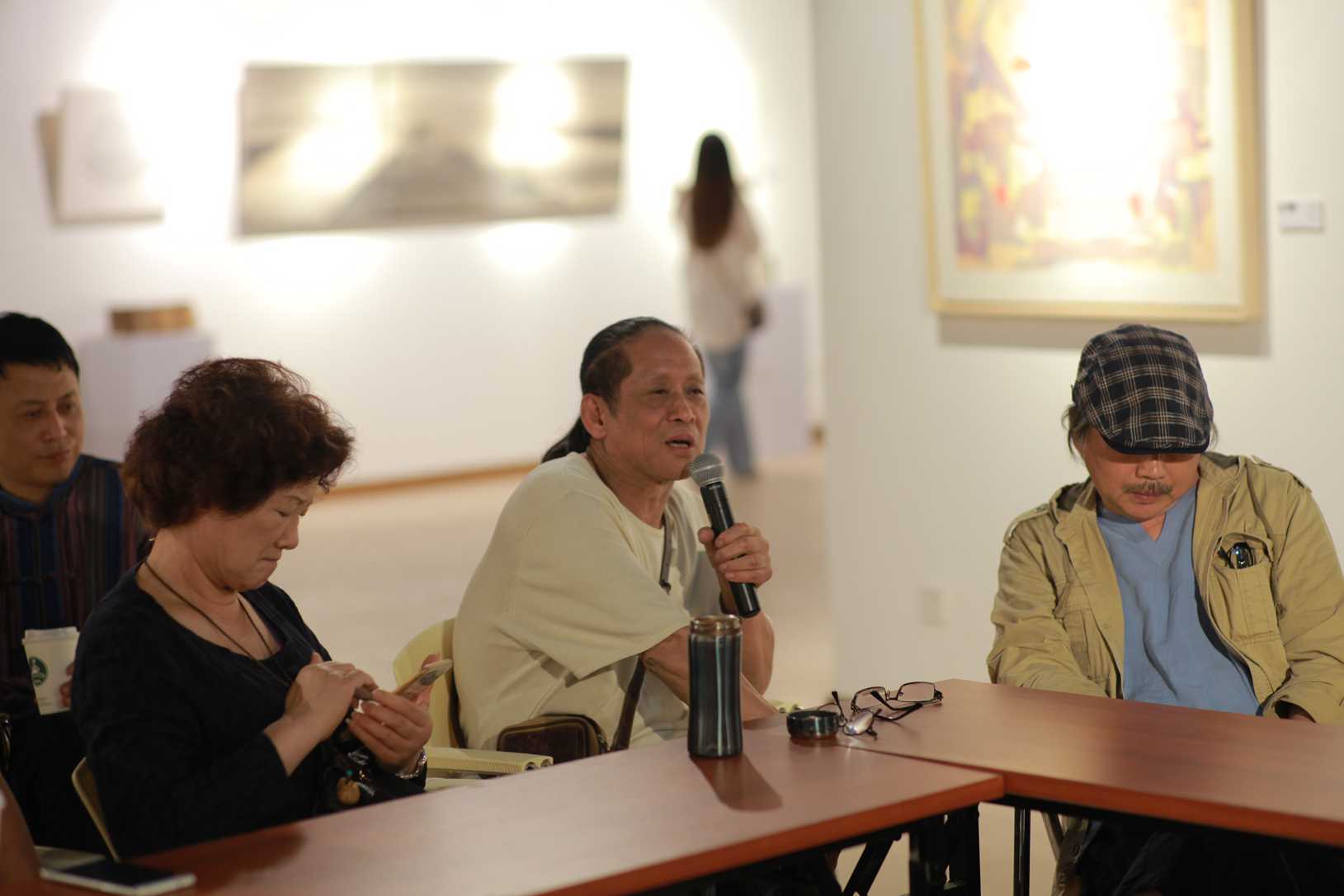 15點30 分,眾嘉賓和到場藝術家移步展廳,進行學術研討分享會。本次分享會通過騰訊直播實現與場外公眾實時分享。