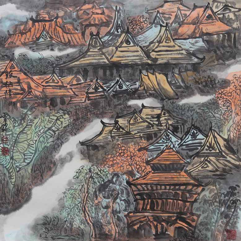云南茶馬古道碧溪鎮寫生 50×50cm
