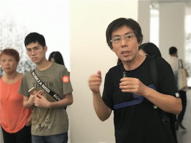 策展人樊林導覽4號展廳,與本次展覽藝術家楊國辛一起介紹作品