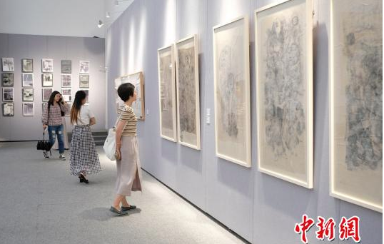 中新網(wǎng)上海7月11日電 (于俊 胡文君)從不同角度,探討中國新水墨藝術(shù)發(fā)展話題的“水+墨:從新海派到當(dāng)代”展覽11日在上海寶山國際民間藝術(shù)博覽館開幕。