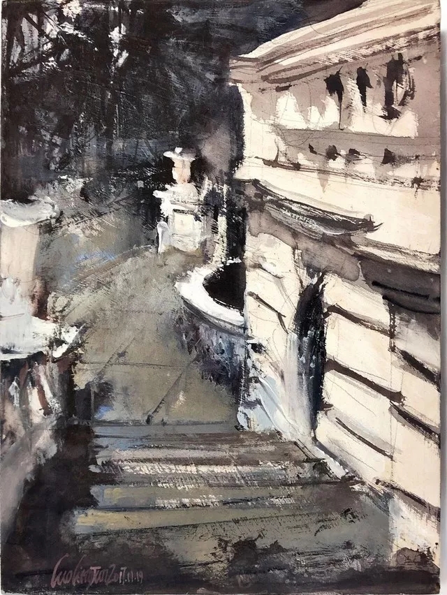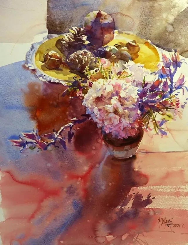 水彩,顧名思義,是水與色彩的邂逅、調和、交感。在水和顏料的作用下,物象怎樣在層次、體塊、光感等方面得到恰如其分的表達,既是對每個畫家用水技巧的考驗,也是對創作主體在對客體進行主觀取舍、加工、變形、熔合時更高自由度的允諾。