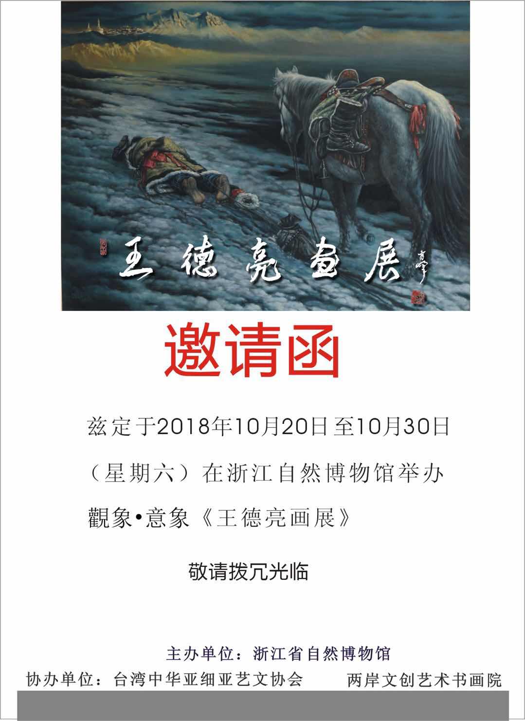 2012年駿馬糸列參加第六屆廈門海峽兩岸文創博覽會,2013年臺灣國際文創產業博覽會,2014年天臺山歷代名人故事於上海城隍廟藝廊,2015年濟公傳奇浙江天臺博物館,2016年濟公活佛圣跡展於馬來西亞柔佛州,2017年童話詩觀象糸列油畫高雄佛陀美術館,2018年"觀象`意象"油畫浙江自然博物館,王德亮近年來走遍大江南北,他的創作作品在全國各地交流展覽,受到了各省藝術界的高度贊賞和好評,每年他還率領臺灣許多藝術家本著"中華文化—脈相承"理念,在各地交流展出;以藝會友以藝洽會本著文化之源延糸龍之國萃內涵為旨向。架起兩岸同胞繼承中華淵源文化之橋樑,用開拓讀者無限思維模式的意象空間為冥想,提昇觀者美學正能量……