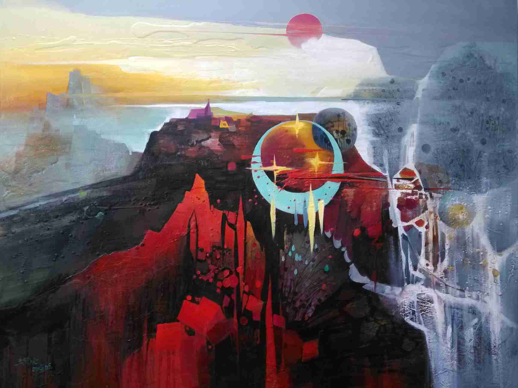 本次展覽的特別創新之作,是作者用40余年遊列視覺藝術寫實禁域,刻苦鉆研勇於實踐求索藝術媒材的肌理層次,效法以大自然宇宙萬象之無極奇幻,吸取意念中的別開生面之巧思妙趣,將宇宙大千造化神蜜的海市蜃樓轉換成別具美麗的自然空間,實足想往的太空天堂,使人回味迷戀;尤如人們身邊—個熟悉而陌生的精彩世界。