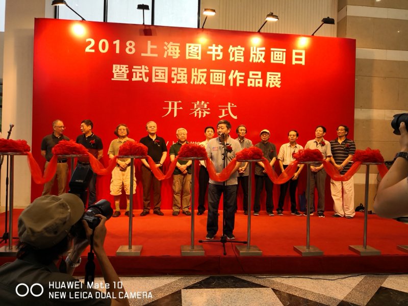 2018上海圖書館版畫日暨武國(guó)強(qiáng)版畫作品展開幕。從17日開始至24日,武國(guó)強(qiáng)的45件版畫作品將在此展出,這些作品生動(dòng)反映上海近年來(lái)的人文景觀和歷史風(fēng)貌。可是上午整個(gè)上海風(fēng)雨交加,才過九點(diǎn),在上海圖書館開幕式大廳,已經(jīng)熱鬧非凡, 就像周德明館長(zhǎng)在武國(guó)強(qiáng)作品研討會(huì)上講的,今天下那么大的雨,沒想到會(huì)來(lái)這么多的人參加開幕式,整個(gè)開幕式大廳都擠滿了人,百余名觀眾冒雨前來(lái)參觀,是圖書館辦版畫展,參加開幕式人數(shù)最多的一次。